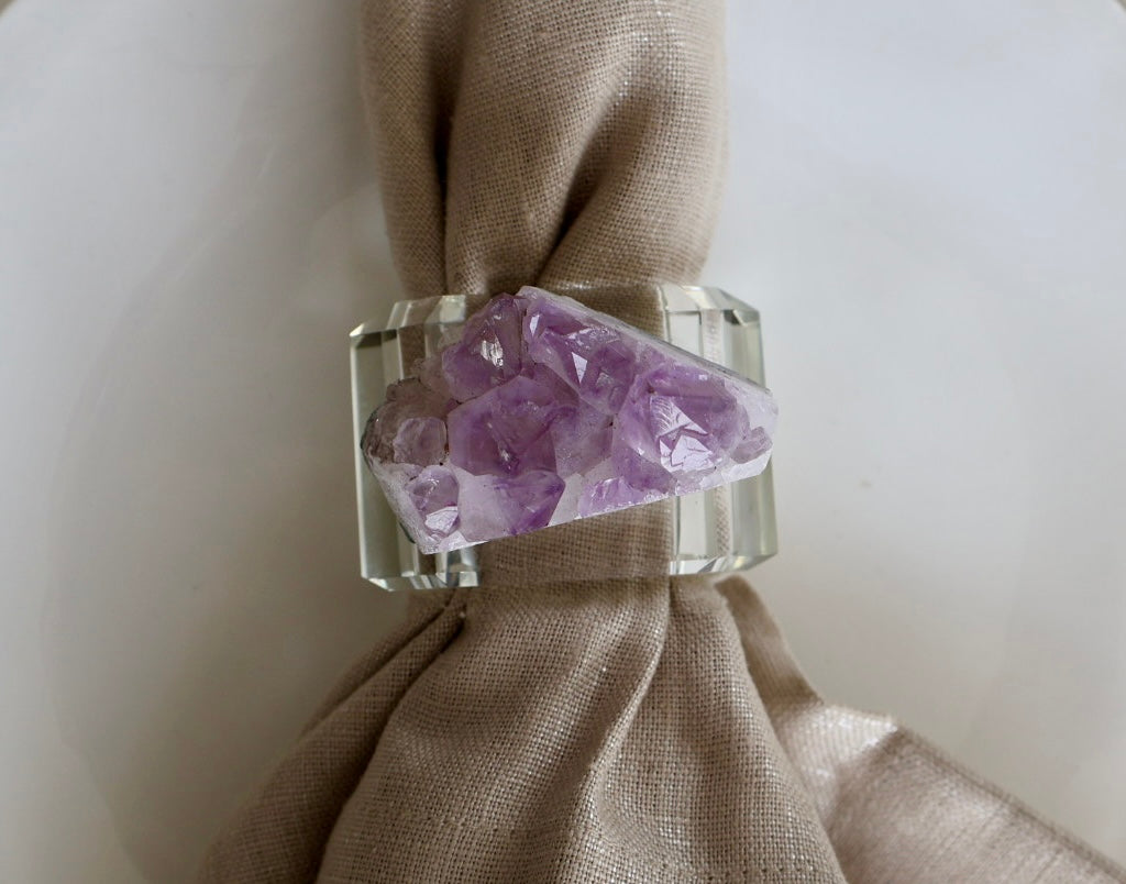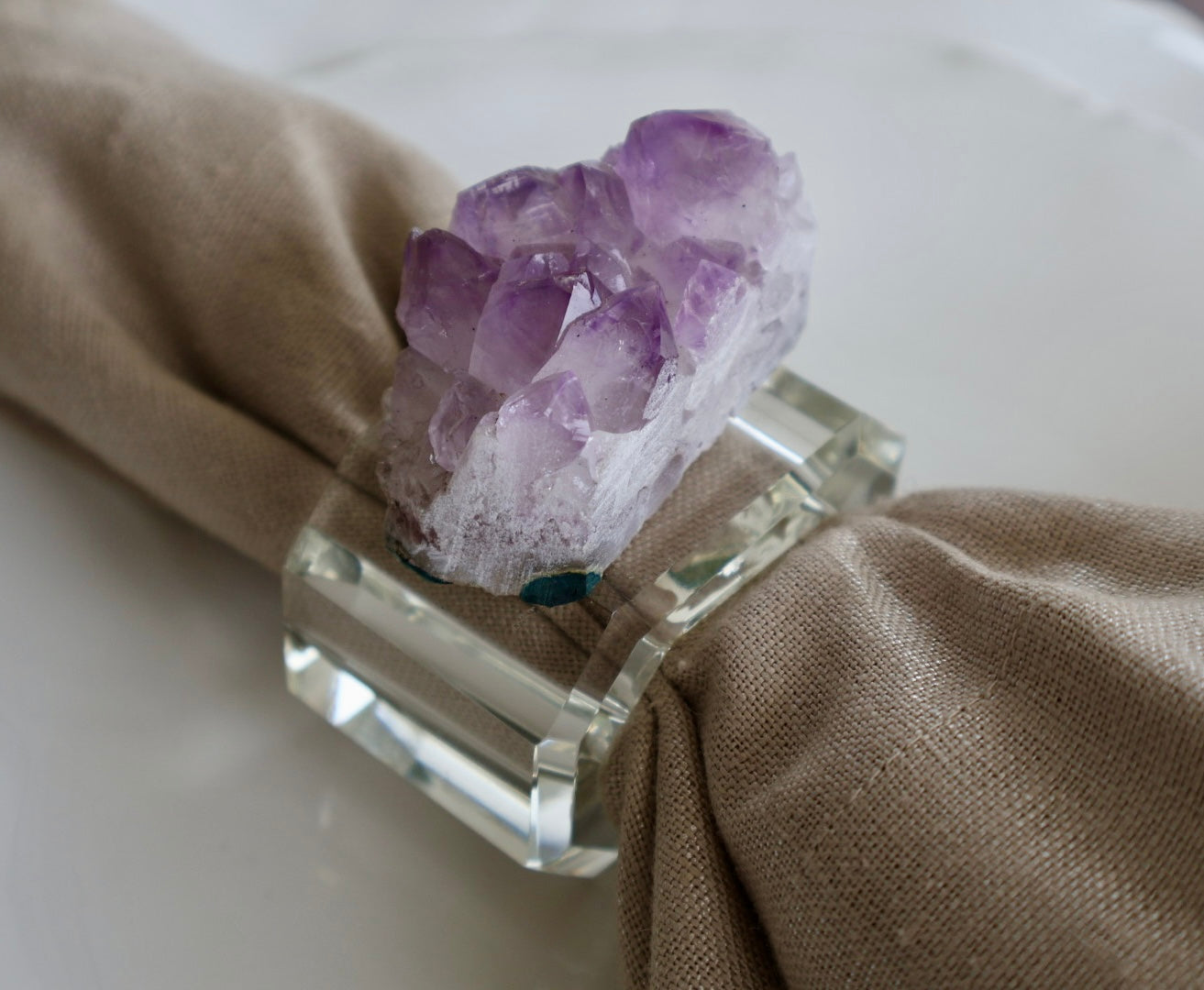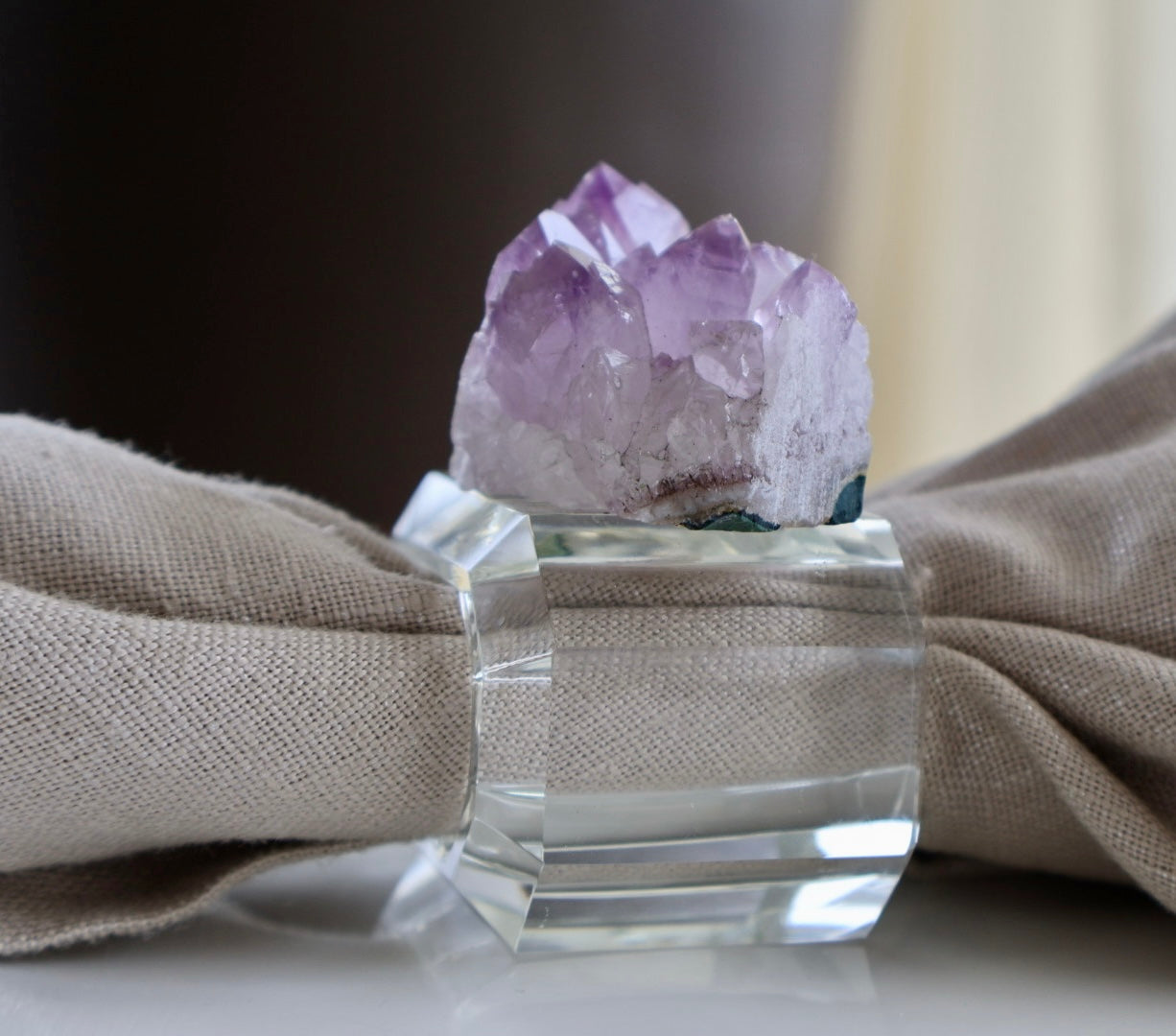 Brazilian Amethyst Cluster Crystal Napkin Ring / Set of 4