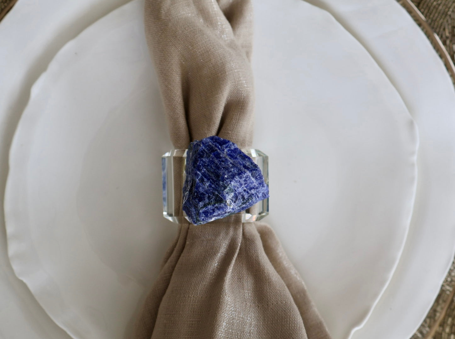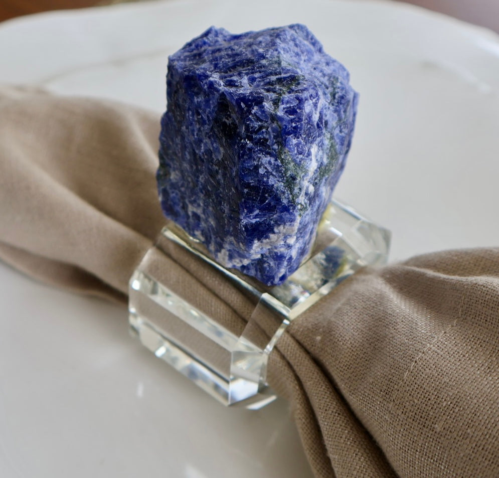 Add a touch of organic luxury to your table with this elegant set of Sodalite crystal napkin rings. Each piece features a distinct, raw natural crystal topper, creating a beautiful, one-of-a-kind accessory for any dining occasion. The crystal base enhances the raw beauty of the stones, offering a modern and sophisticated aesthetic. Perfect for both casual and formal settings, this assorted set showcases different crystals in their natural form, bringing a unique energy and charm to your table.
